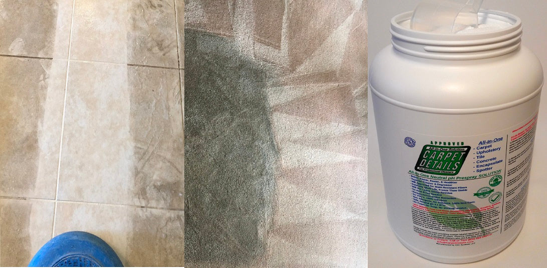 As professional cleaners ourselves (www.FDCsystems.com), we understand exactly the concerns and issues home owners, fellow professional cleaners and maintenance personnel face each day such as; stains and spots coming back, traffic lanes not coming clean, urine odors coming back, chemicals not working properly, employee misuse of chemical, fiber browning, wicking issues, slow cleaning production rates, mixing and storing hassles of various chemicals, chemical related health issues, and many more problems in our field. Carpet Details is the only solution for all of these problems. We created Carpet Details in 1991 after years of chemists' research and trial and error. Carpet Details was created utilizing the power, convenience, and proven effectiveness of non-polymer encapsulation. Made of a blend of the most pure, natural minerals from exclusive U.S. mines processed, stored, and mixed according to our proprietary specifications, we are the sole manufacturers of Carpet Details. It is not a private labeled product made by another company.